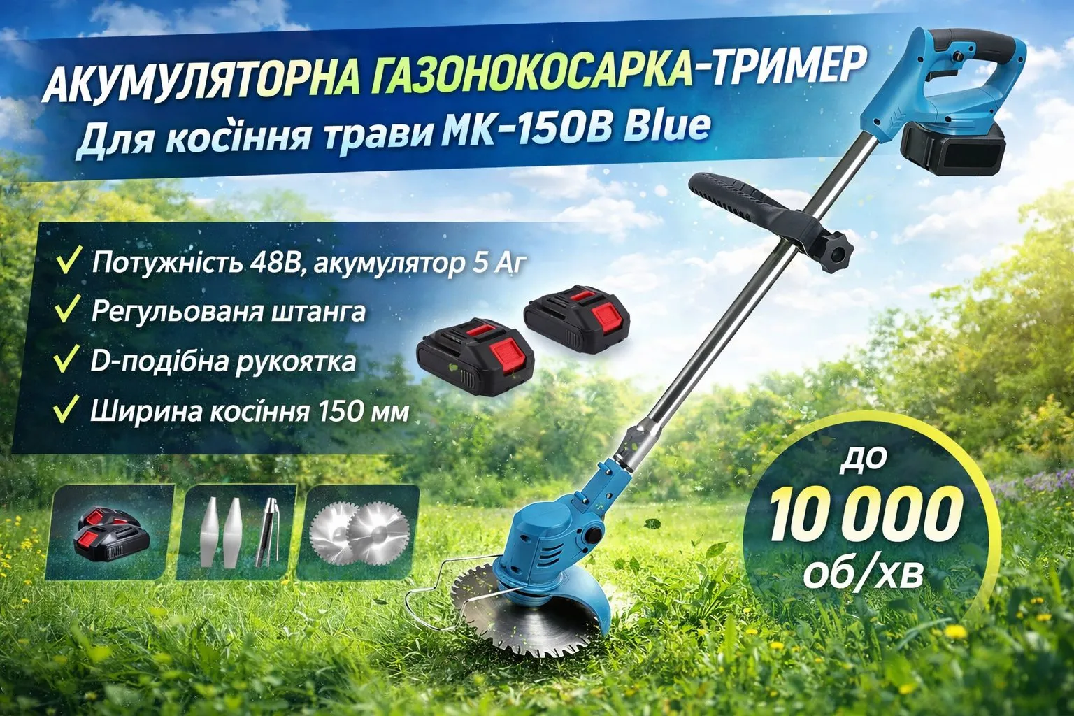 До 10 000 об/хв — легко справляється з травою і чагарниками